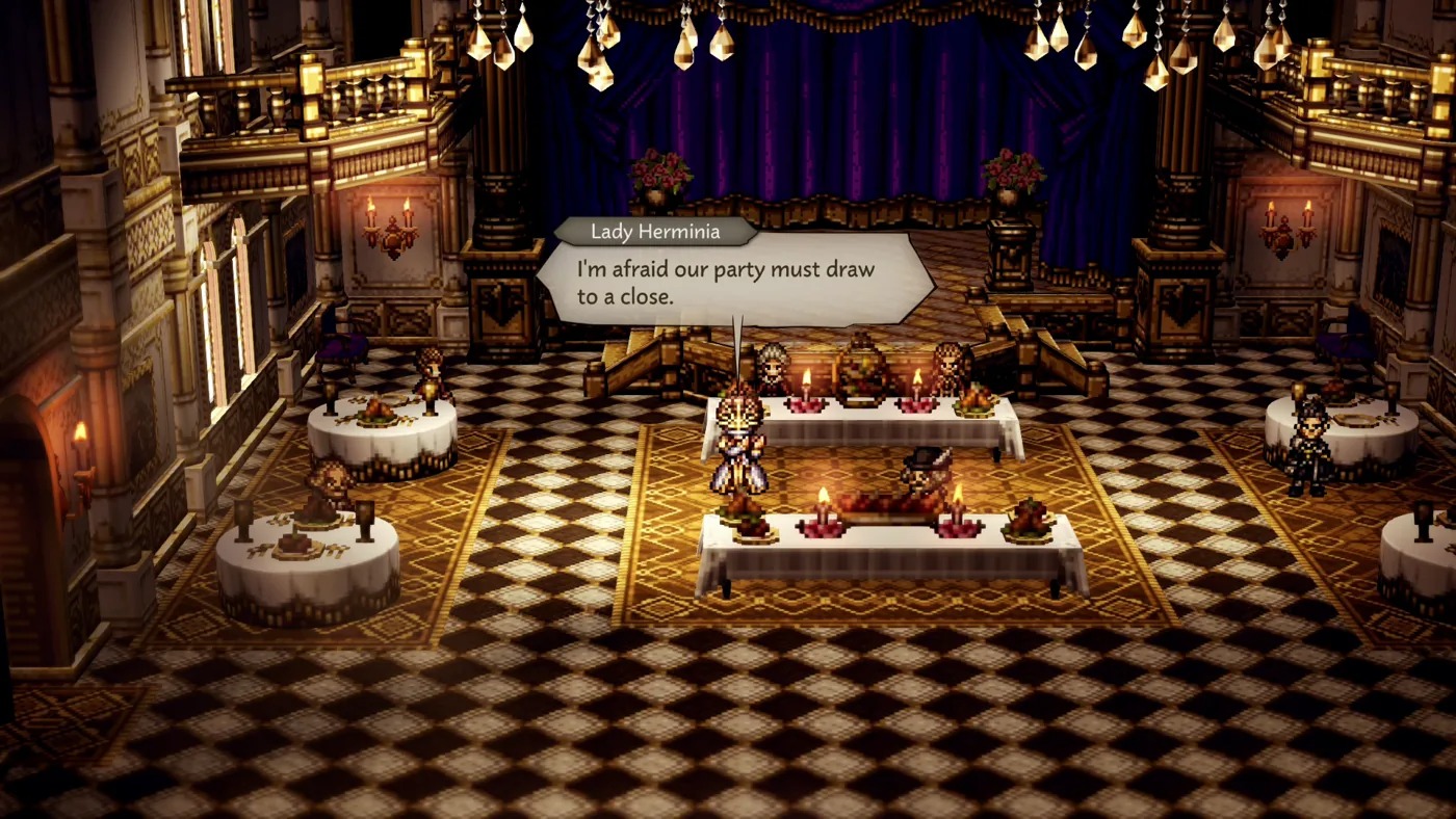 That’s mainly due to how the main quest is structured. After a tragic prologue where your hometown is burned to the ground, you’re given three story branches in order to pursue the trio of villains who were responsible. Themed around power, fame, and wealth, those three paths then converge into a conclusion for what is roughly the first half of the overall story (at about 40 hours). And don’t be fooled by the fakeout credits roll, because you’ve barely seen what Octopath Traveler 0 has up its sleeve. It then splits into three new questlines that pick up those themes once again, and although they retread similar territory, the stakes get higher as more of Octopath’s world gets involved and your understanding of it deepens. Warring kingdoms and corrupt religious institutions across the land of Orsterra, where betrayal is more common than loyalty, start to face greater consequences as the full picture comes into focus and the story gains real momentum.