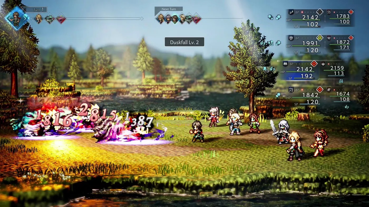I’ve been on record saying Octopath Traveler 2 has one of my favorite turn-based combat systems ever; it shines here as well and for slightly different reasons. The Boost and Break systems give the typical dynamic of hitting elemental affinities some extra depth to devising how turns should play out. Playing the guessing game of discovering what enemies are weak against gets a little tiresome, but once that part is solved, scheming for your plan of attack based on turn order to Break enemies and tee up the big hits is oh so satisfying. Building each party members’ Boost points to add extra hits or increase spell potency gives you something to plan around for turns well in advance. And lining up all these variables while juggling the threat of hard-hitting bosses, who can impose some impactful status ailments or wipe party members in one turn, had me feeling like a genius tactician. Octopath might be playing on our nostalgia with its HD-2D retro-style visuals, yet this series has continually set a high bar for turn-based combat systems in modern gaming.
